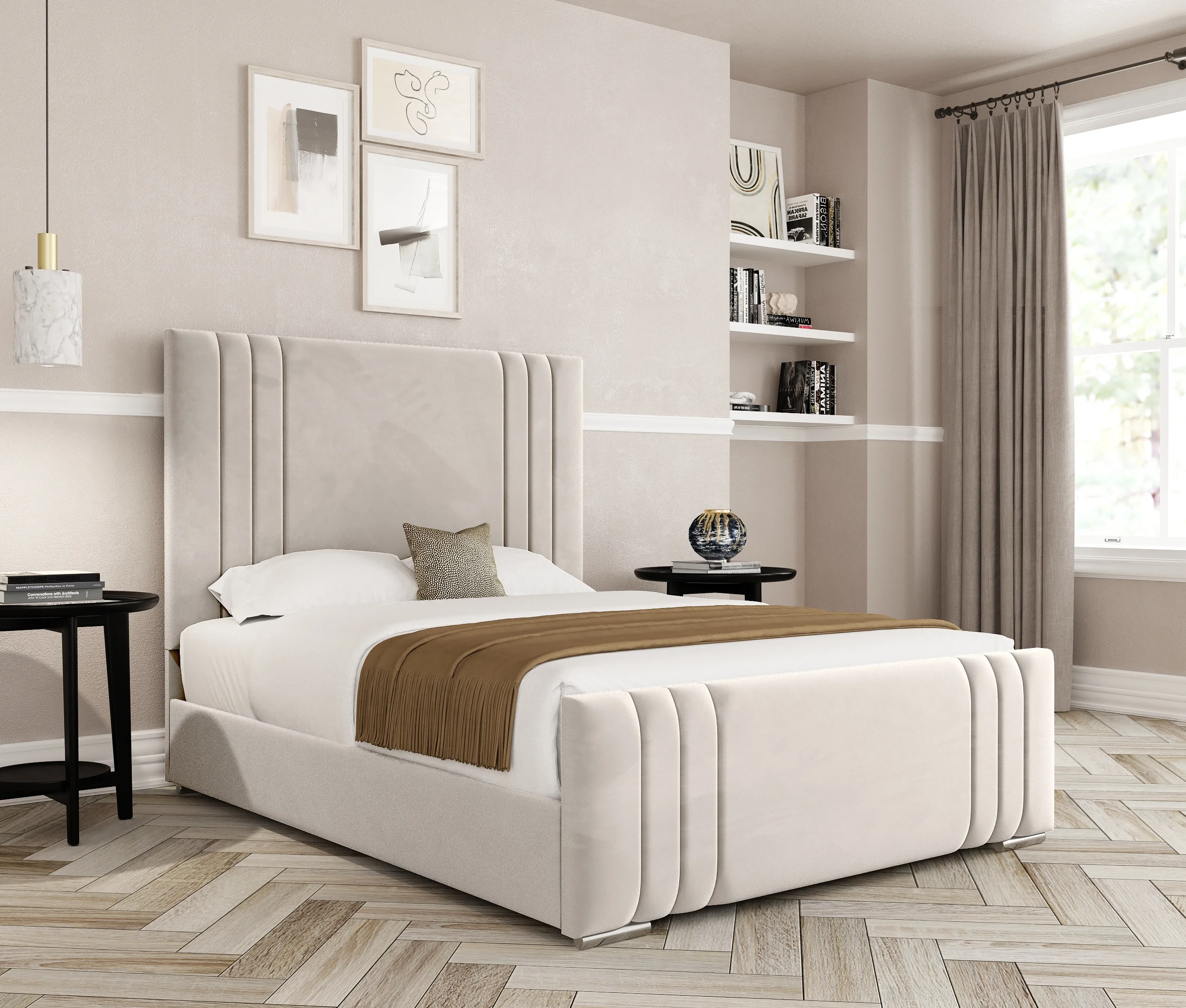 Original price was: £442.00 – £665.00Price range: £442.00 through £665.00. Price range: £221.00 through £332.00Current price is: £221.00 – £332.00Price range: £221.00 through £332.00.Introducing the Nepal Framed Slat Bed — where subtle sophistication meets everyday comfort. Available with a practical Ottoman storage base or a classic slatted base, the Nepal Bed is thoughtfully designed with premium materials and a contemporary finish to enhance any bedroom space. Please note, a footboard will add around 2″ (5cm) to the length of the bed.
