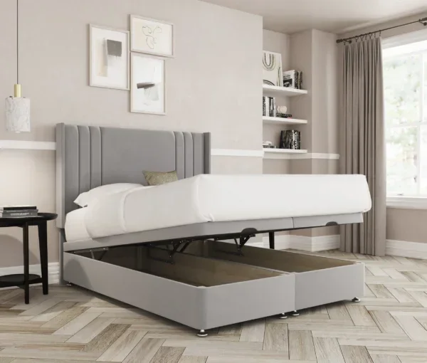 Introducing the Ripon with Wings – a sophisticated ottoman bed that combines cutting-edge style with clever practicality. Without a footboard, this design offers ample hidden storage and a more open, breezy feel thanks to its dramatic winged headboard and elegant vertical panelling.